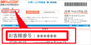 お客様番号は商品お届け時に同梱されている明細書に記載されている1~6桁の数字です。