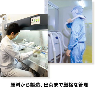 日清製粉グループ独自の品質保証体制食の安全を守り続けてきた実績に基づく品質保証体制により、原料の有用性、品質や安全性から細かく調査します。調査を繰り返して製品化、工場の衛生管理は第三者の専門家が確認しています。 作業者の健康まで確認。さまざまな規格による自社管理を行っています。